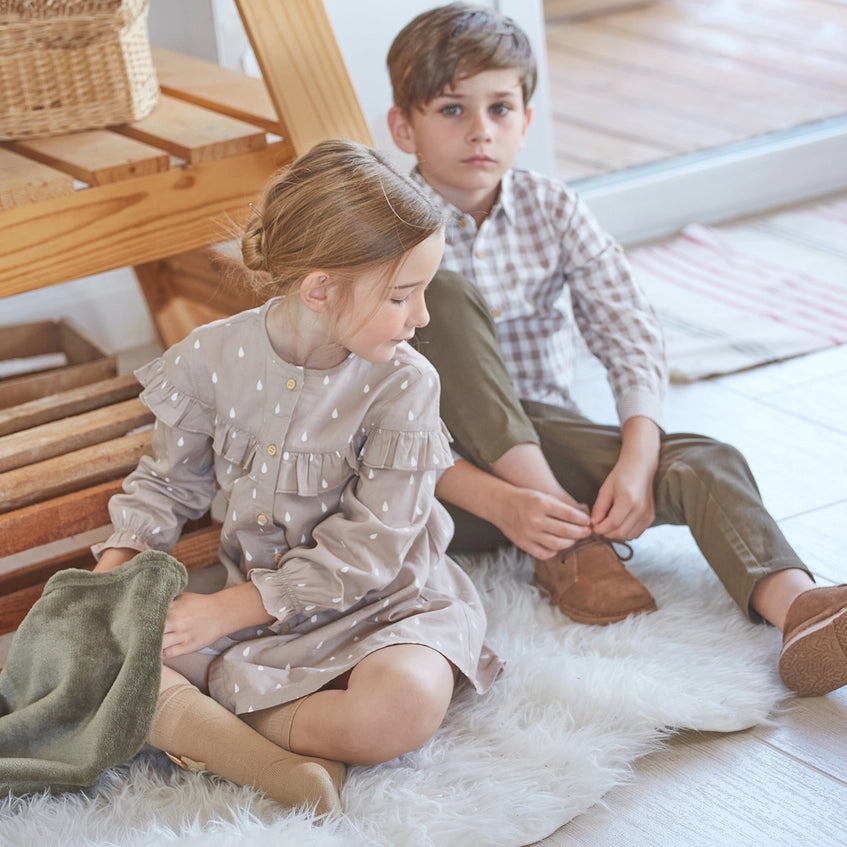 Brown Gingham Bow Sleeve Blouse & Bloomer Set