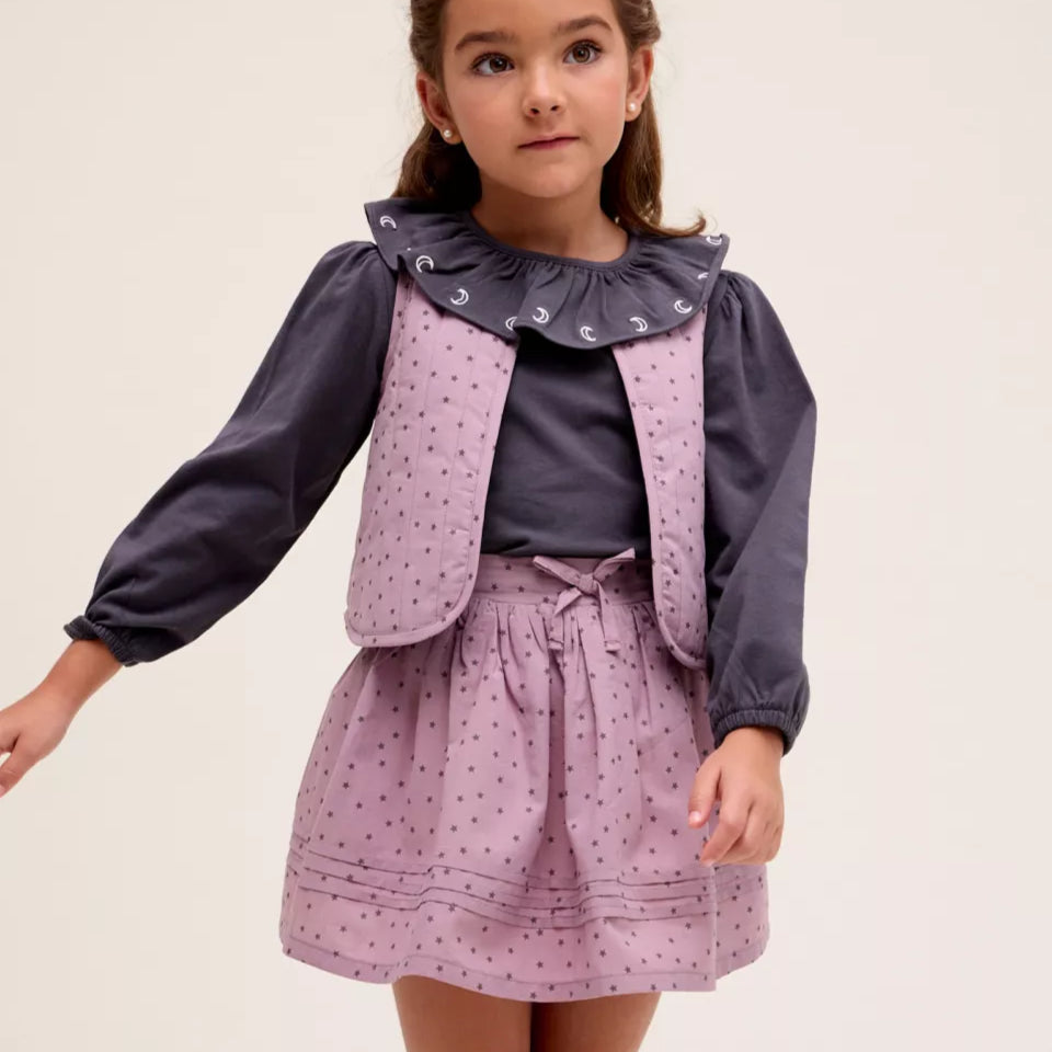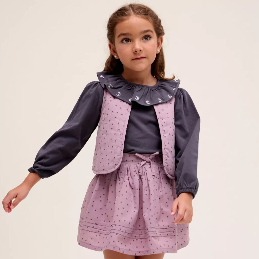 Dark Grey Girl's T-Shirt with Ruffle Collar and Embroidery