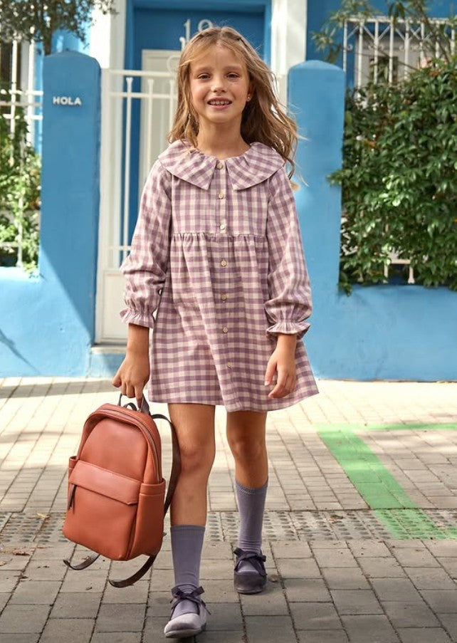 Boy's Brown and White Checkered Shirt with Classic Collar